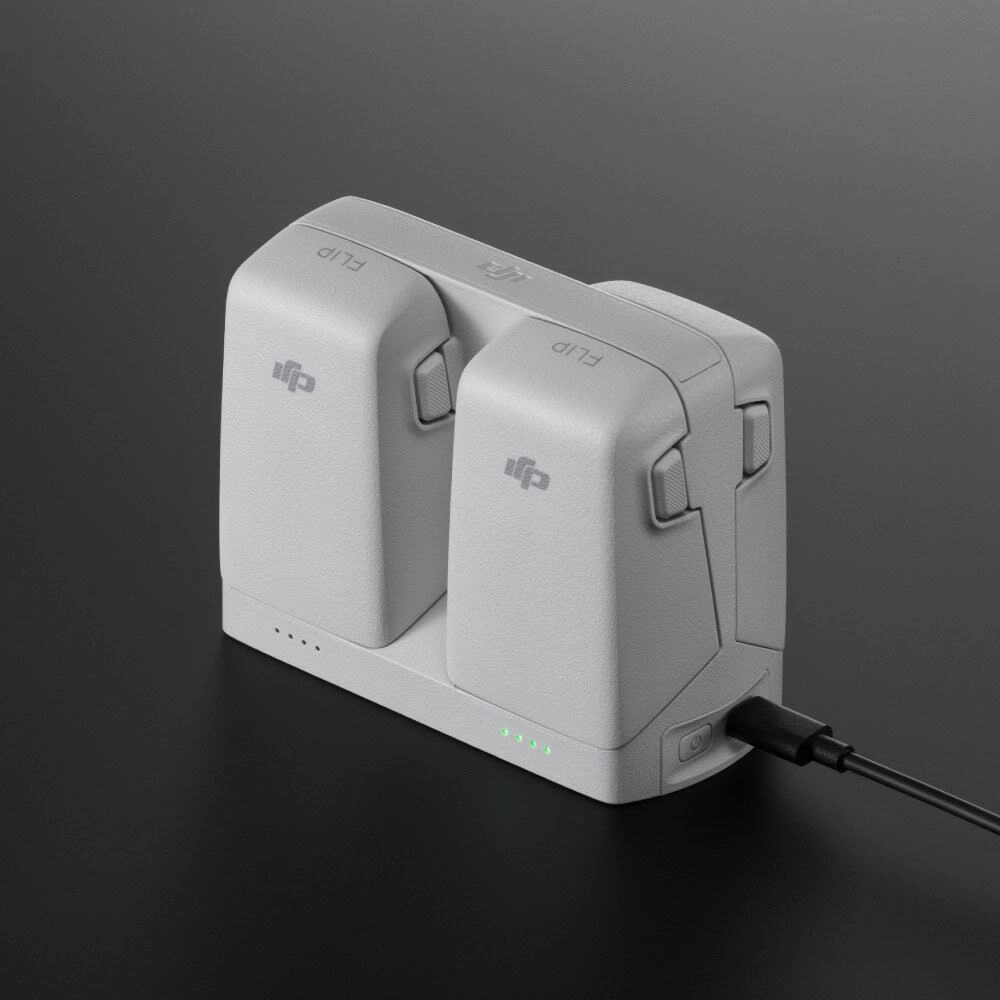 Он может хранить и заряжать батареи. При использовании с портативным зарядным устройством DJI 65W он может полностью зарядить 2 батареи Intelligent Flight одновременно всего за 70 минут.