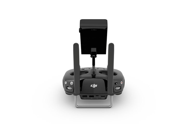 На корпусе пульта имеются специальные кнопки управления, позволяющие делать фотографии и осуществлять видеосъемку, контролировать работоспособность аккумуляторов, подвеса и других систем. Пульт оснащен портами USB и HDMI для подключения мобильных устройств и мониторов.