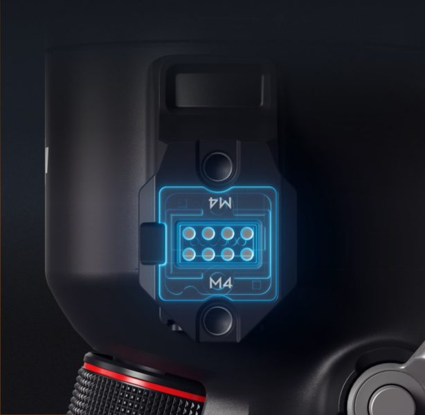DJI RS 4 оснащен коммуникационным портом RSA, который позволяет подключать аксессуары, такие как привязанная рукоятка управления DJI RS и аксессуары сторонних производителей.[3]
