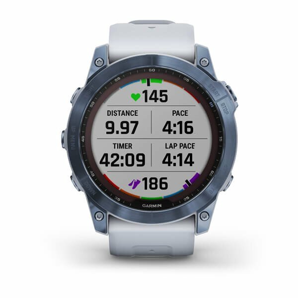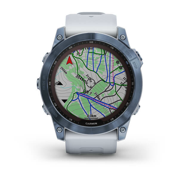 Garmin Fenix 7X Sapphire Solar титановый синий минерал DLC с белым ремешком |